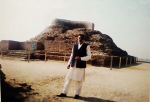 اُداس قدموں کے ساتھ میں باباجی کے ساتھ ساتھ چلنے لگا۔ بابا جی بولے میں نے تاریخ میں پڑھا ہے کہ یہ شہر چار ہزار سال پرانی تہذیب کا مرکز ہے۔ اس کی ثقافت اپنی ہم عصر سمیری ثقافت (یعنی بزرگ و معزز لوگوں کی ثقافت) سے بہت ملتی جلتی ہے۔ یہ ایک جدید اور ترقی یافتہ شہر تھا اور اس کی تہذیب کئی لحاظ سے بین النہرین کی تہذیب سے ممتاز ہے۔ شہر میں بڑے بڑے حمام، کھلی اور چوڑی سڑکیں، مصنوعات، زیورات، اسلحہ اور اسلحہ خانے، مجسمہ سازی کے علاوہ یہ لوگ فن تعمیر میں بھی نہایت ماہر تھے۔ جو کتبے یہاں سے ملے ان پر لکھی ہوئی تحریریں آج تک ناقابل فہم ہیں۔ ظاہراً اسمیری بھارت کی برہمی ابجد، ابتدائی عیلامی، جنوبی عربی سے ملتی ہے اور غالبا بھارت کے قدیم مذہب کے پیروکار تھے۔ کچھ تاریخ دانوں کا خیال ہے کہ رومیوں نے اس طرف رخ کیا اور اس عظیم شہر کے باشندوں کو بیگ وقت تہہ تیغ کردیا، مگر اس کے بارے میں حتمی کچھ نہیں کہا جاسکتا کہ یہ قوم کس قوم کے ہاتھوں قتل ہوئی۔ اسی لیے اس شہر کو ”موہنجودڑو“یعنی مردوں کا ٹیلہ کہا گیا ہے۔ اس طرح باتیں کرتے اور چلتے چلتے ہم اس گیٹ تک آن پہنچے جس گیٹ سے چند گھنٹے قبل میں اندر داخل ہوا تھا۔